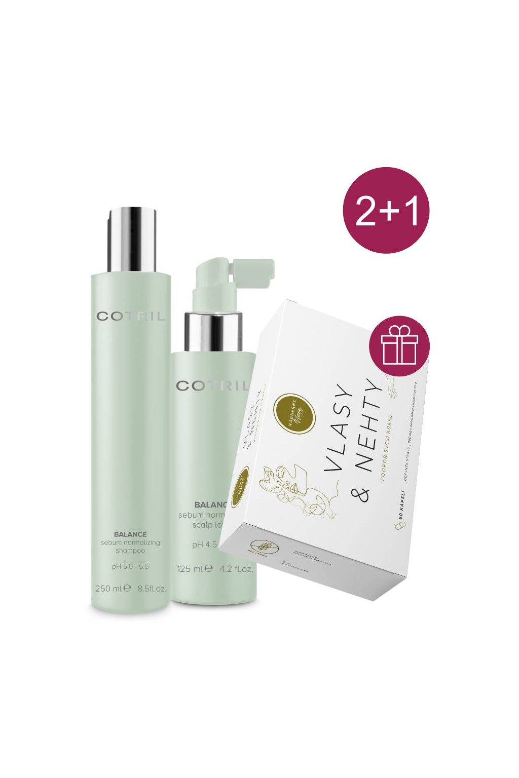 Akce 2+1 Cotril BALANCE Pro mastné vlasy šampon, tonikum +ZDARMA Kapsle pro vlasy a nehty