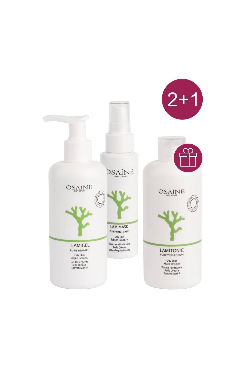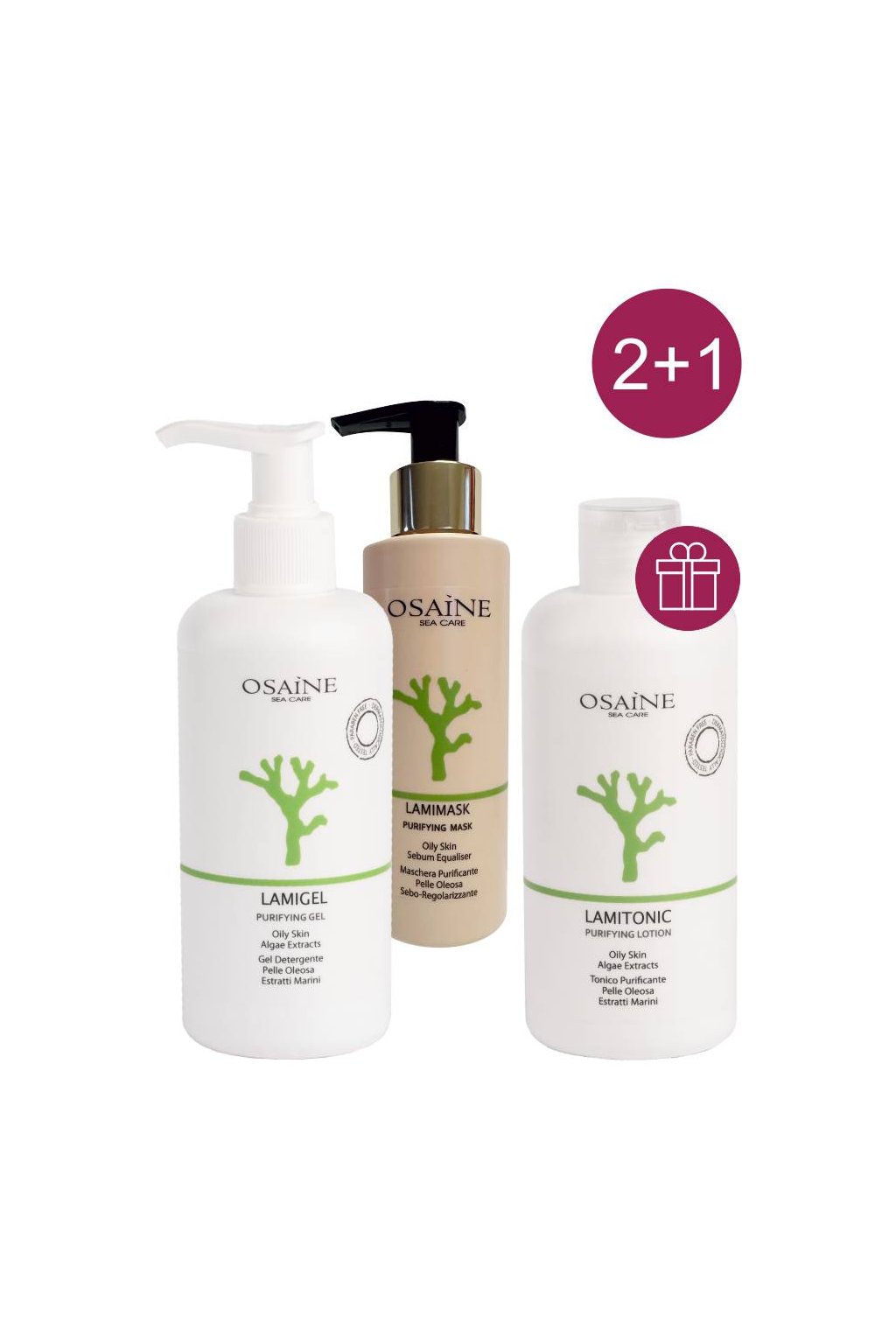 Osaine Lamigel čistící gel 250ml, Lamimask čistící maska 100ml +ZDARMA Lamitonic čistící tonikum 250ml