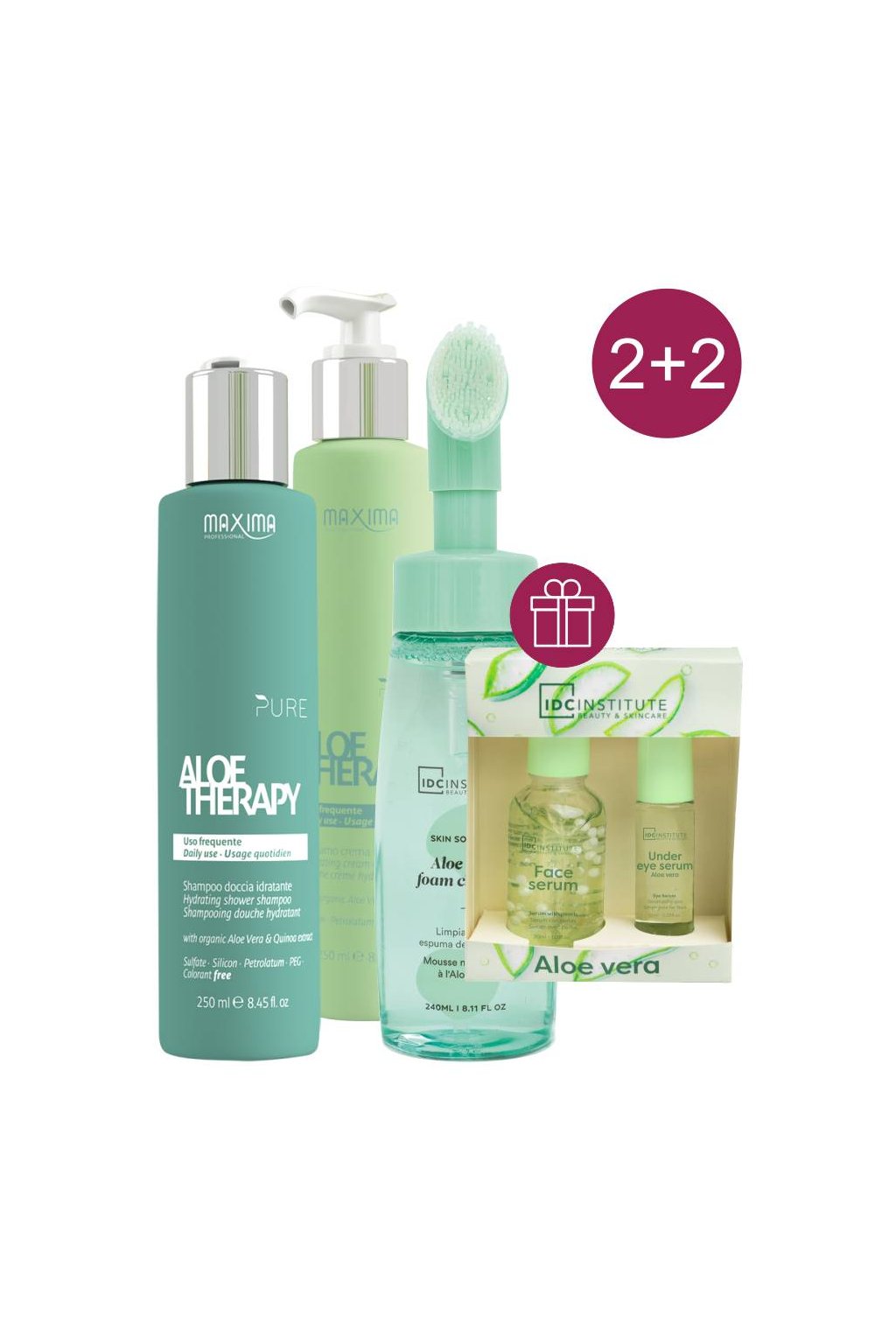 Akce 2+2 Maxima ALOE šampon, balzám +ZDARMA IDC Aloe čistící pěna a Duo SET pro pleť a oční okolí