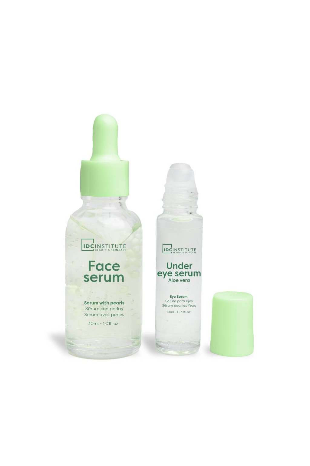 Objevte luxusní péči o vaši pleť s dárkovou sadou IDC Institute Aloe Vera Shinning Duo Set. Tato kosmetická sada obsahuje oční sérum s Rollerem (10 ml) a sérum s perličkami (30 ml). Produkty obsahují výtažky z aloe vera. Po použití je pokožka hydratovaná, regenerovaná a rozzářená. Vhodné pro všechny typy pleti.