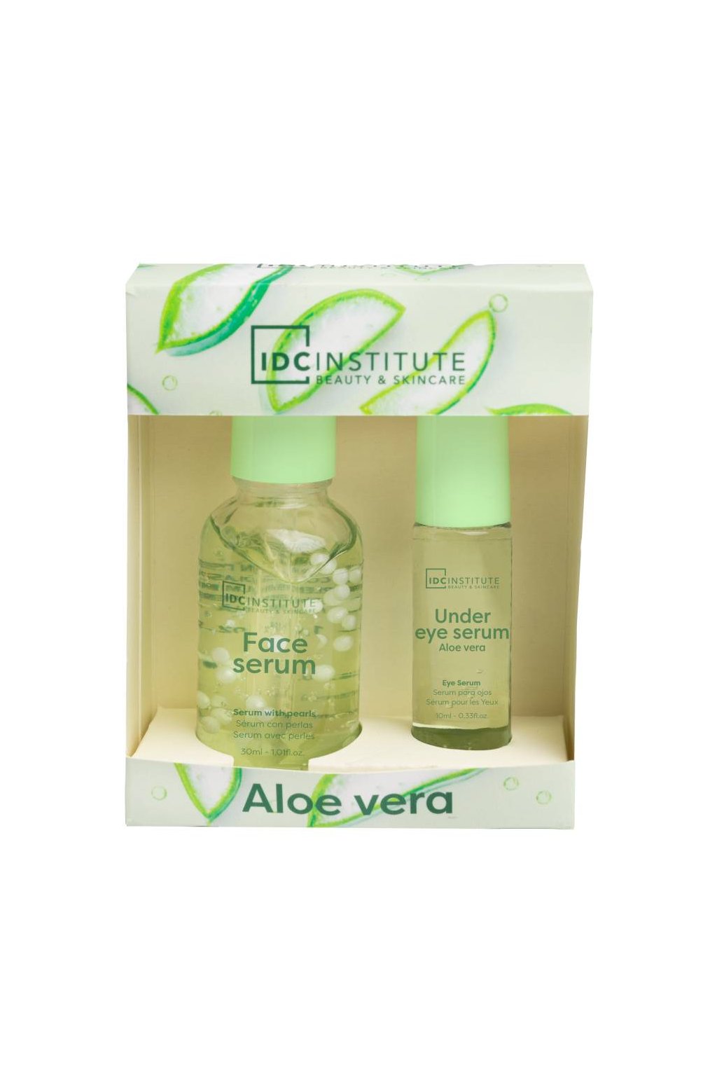 IDC Institute Aloe Vera Shinning Duo Set - Objevte luxusní péči o vaši pleť s dárkovou sadou IDC Institute Aloe Vera Shinning Duo Set. Tato kosmetická sada obsahuje oční sérum s Rollerem (10 ml) a sérum s perličkami (30 ml). Produkty obsahují výtažky z aloe vera. Po použití je pokožka hydratovaná, regenerovaná a rozzářená. Vhodné pro všechny typy pleti.