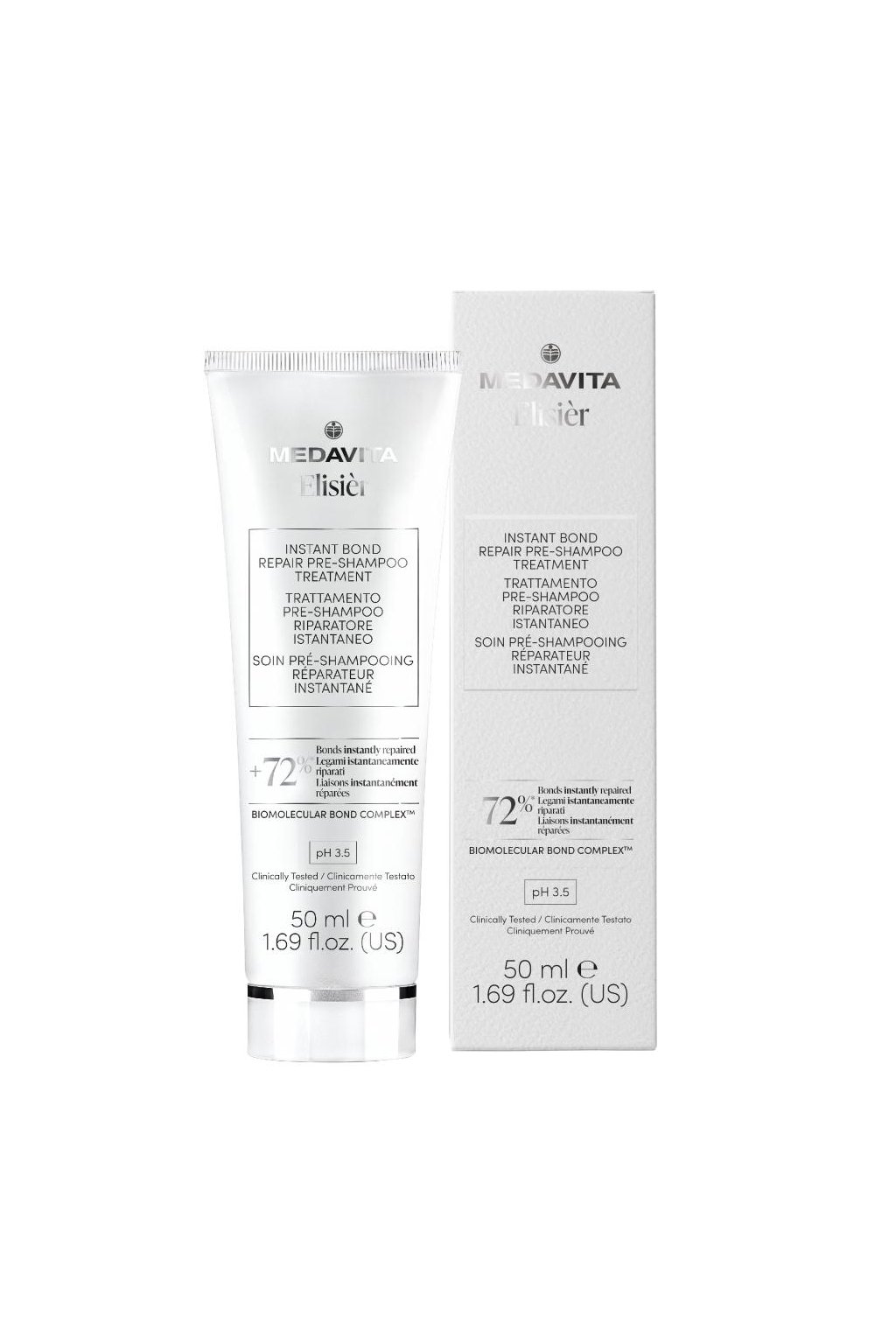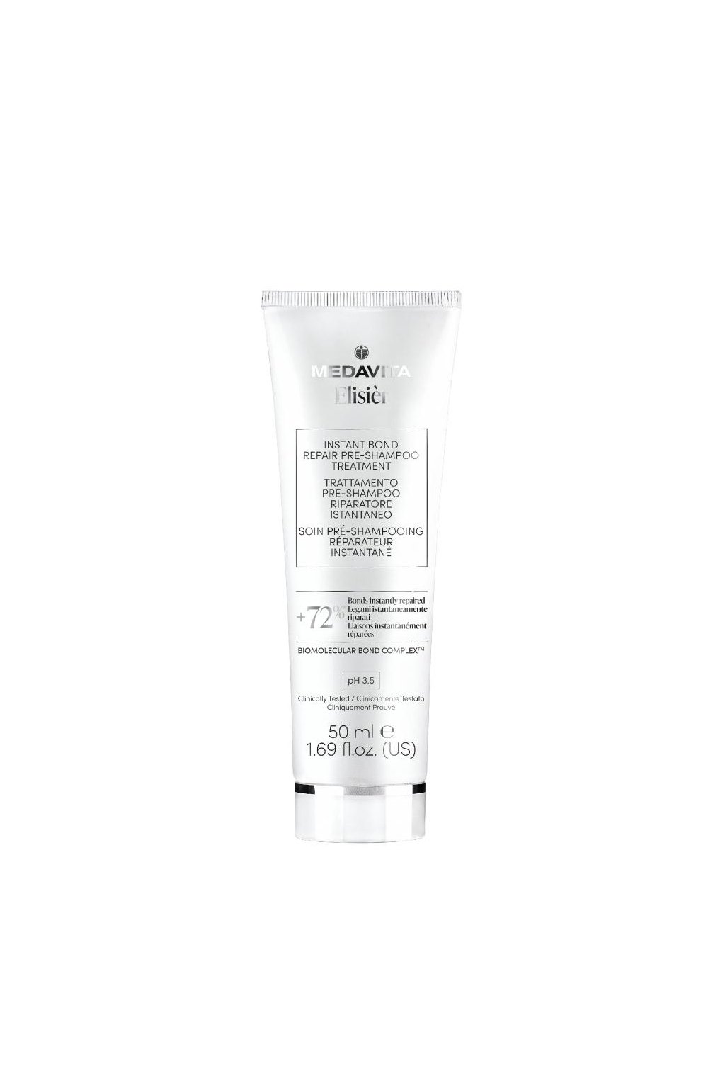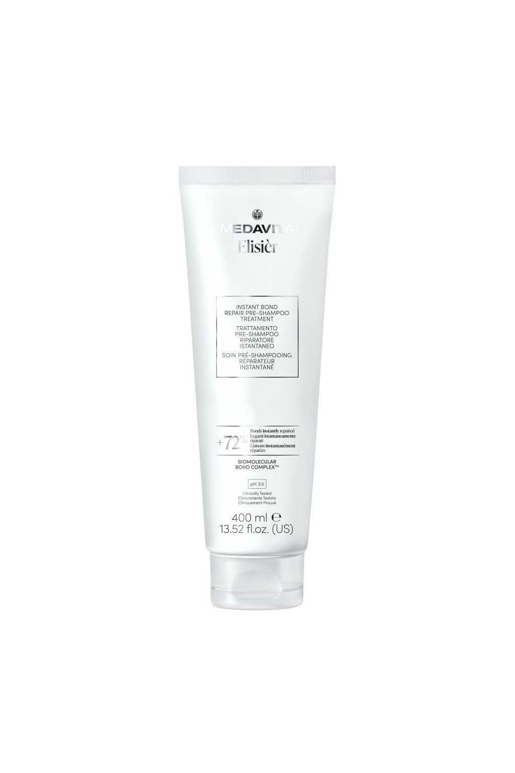 Medavita Elisièr Instant Bond Repair Pre-Shampoo Treatment pH 3.5 - Ošetřující péče před mytím vlasů ideální pro barvené, poškozené a namáhané vlasy, které jsou lámavé, křehké nebo ztratily pružnost. Obnovuje vazby vlasových vláken a navrací jim pevnost, novou sílu a odolnost. Poskytuje okamžité i dlouhodobé výsledky a viditelně revitalizuje i ty nejvíce poškozené vlasy. Zanechává vlasy lesklé, hladké a výjimečně nádherné.