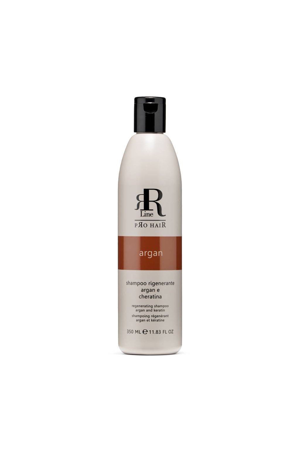 RR Line Regenerating Shampoo Argan And Keratin. Regenerační šampon s arganem a keratinem pro šetrné mytí, již od prvního použití navrací vlasům jejich přirozený objem a lesk. Má vysoce efektivní antioxidační účinky, chrání před smogem a negativními vlivy vnějšího prostředí.