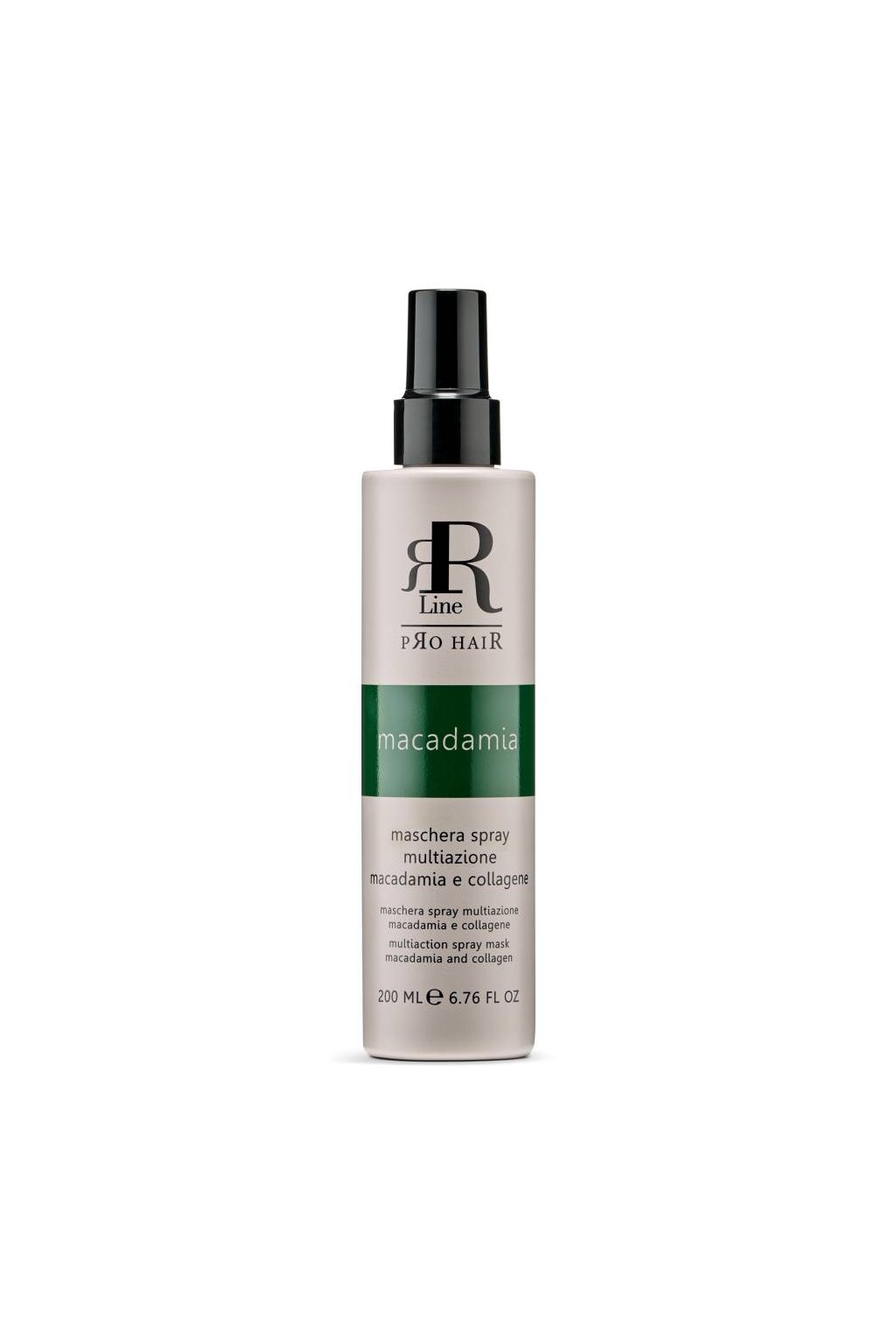 RR Line Maschera Spray Multiaction Macadamia e Collagene - Multifunkční maska ve spreji bez oplachování - Vyživující maska ve spreji s makadamiovým olejem a kolagenem ideální pro namáhané, matné vlasy bez lesku. Vlasy vyživuje, hydratuje a zjemňuje bez zatížení, usnadňuje jejich rozčesávání. Zvýrazňuje a chrání kosmetickou barvu, zanechává vlasy poddajné, hebké a lesklé.