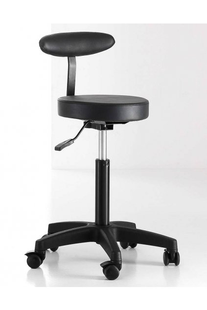 Taburet SMART BLACK s opěrkou, pneumatický zdvih. Výrobky označené "Na dotaz" dodání 5-8 týdnů od objednání a úhrady zálohy.