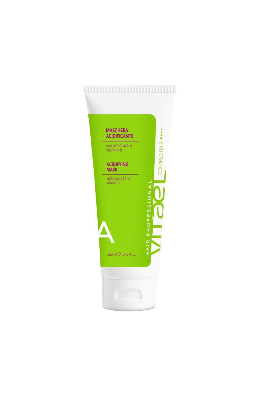 Vitael COLORED Acidifying Mask - Intenzivní maska s kyselým pH pro vlasy barvené, chemicky upravované a oslabené. Obsahuje exkluzivní antioxidační komplex na bázi oleje z Acai, ovocných kyselin, vitamínů a UV filtru. Vlasy zahalí do speciálního pláště, který je chrání před vnějšími agresemi. Pomáhá udržovat barvu, prodlužuje její stabilitu a zvýrazňuje lesk. Přináší výživu a hebkost.